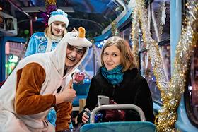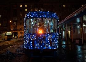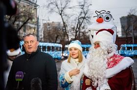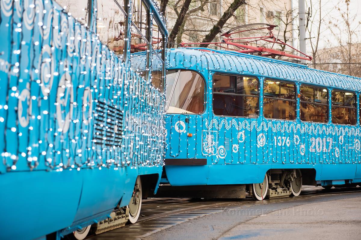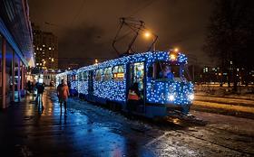 Новогодние трамваи вышли на маршруты в Москве.