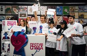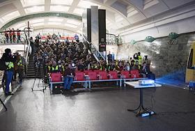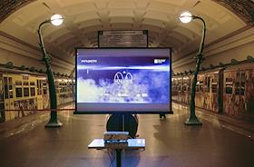 "Ночь социальной рекламы" на станции "Славянский бульвар" московского метрополитена.