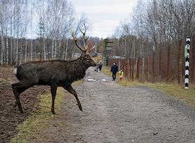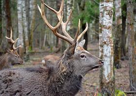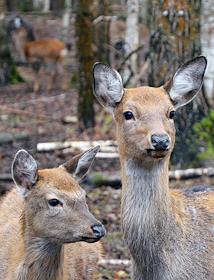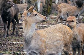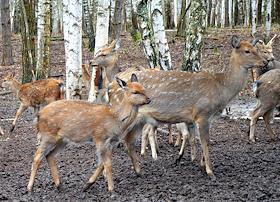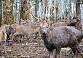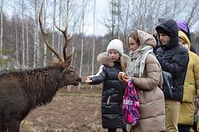 Пятнистые олени, живущие в вольерах охотничьего хозяйства Копорье.