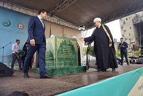 Церемония закладки камня возрождаемой Нижегородской Ярмарочной мечети на набережной Оки.