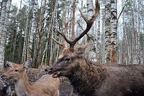 Пятнистые олени, живущие в вольерах охотничьего хозяйства Копорье.