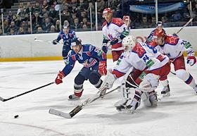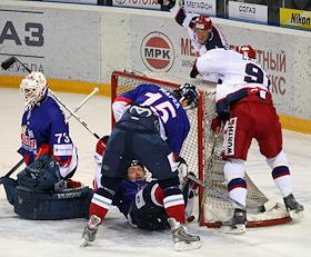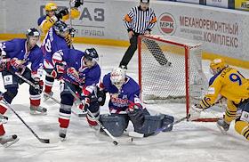 Континентальная Хоккейная Лига (КХЛ). Матч между командами "Металлург" (Магнитогорск) - ЦСКА в УСК…