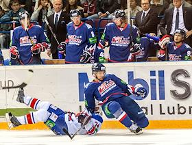 Континентальная хоккейная лига (КХЛ). Матч между командами "Металлург" (Магнитогорск) - "Лев"…