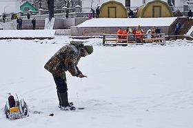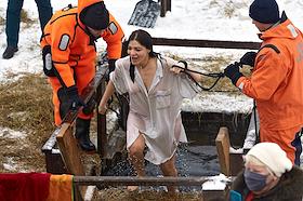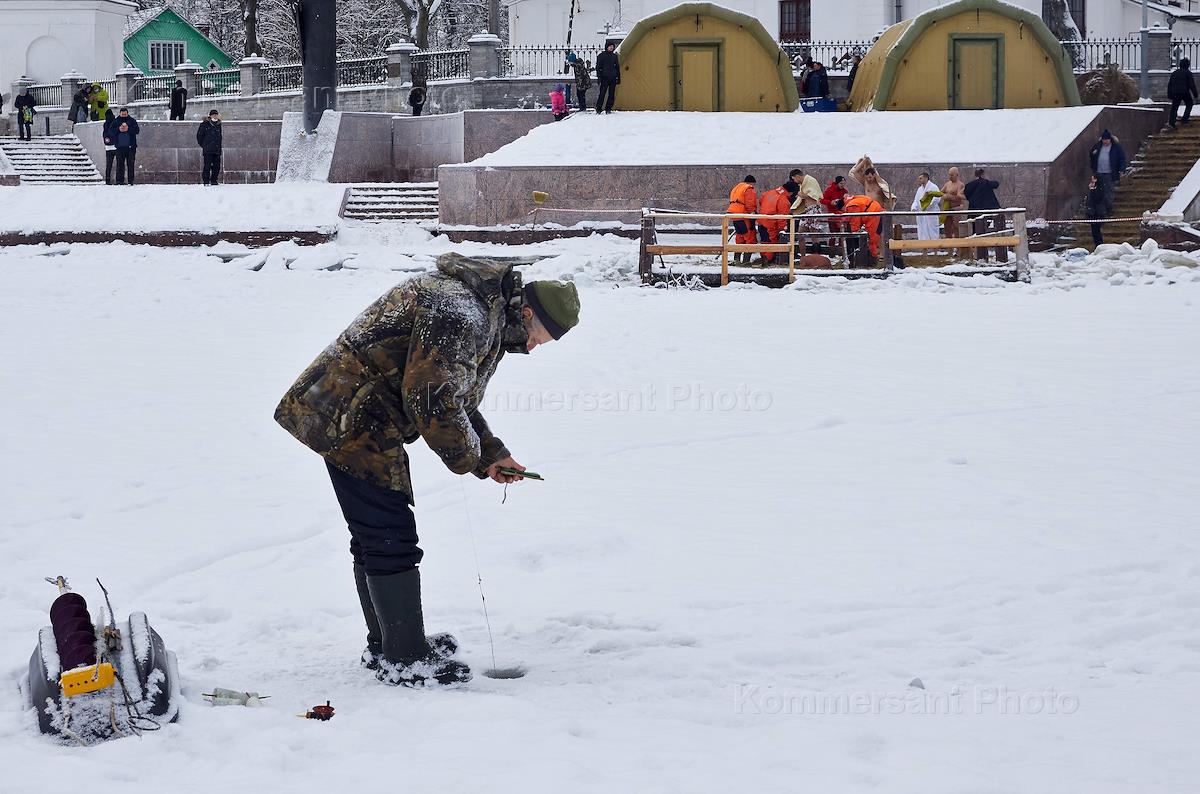 Праздник Крещения Господня. Крещенские купания в купели на реке Неве у церкви Александра Невского в…