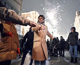 Празднование нового года в Москве.