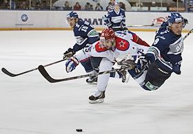 Континентальная хоккейная лига (КХЛ). Матча между командами "Динамо" (Москва) и ЦСКА (Москва), на…