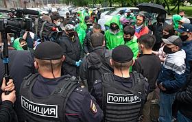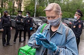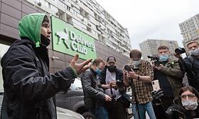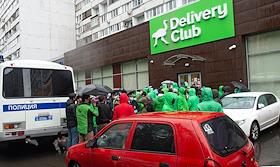 Акция курьеров Delivery Club возле офиса компании за улучшение условий труда