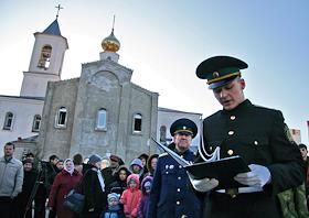 Воспитанники кадетского казачьего класса на торжественной церемонии принятия торжетвенного обещания.