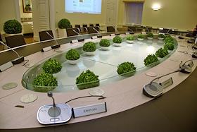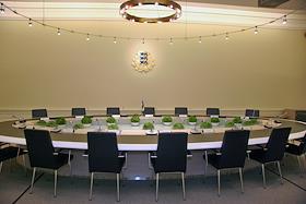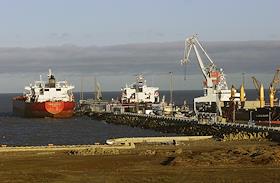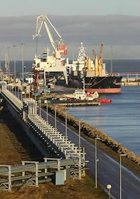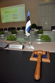 Зал заседаний Эстонского парламента. Грузовой порт в Силламяэ на берегу Финского залива.