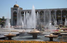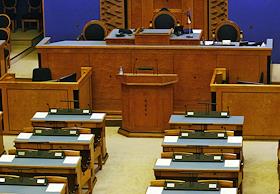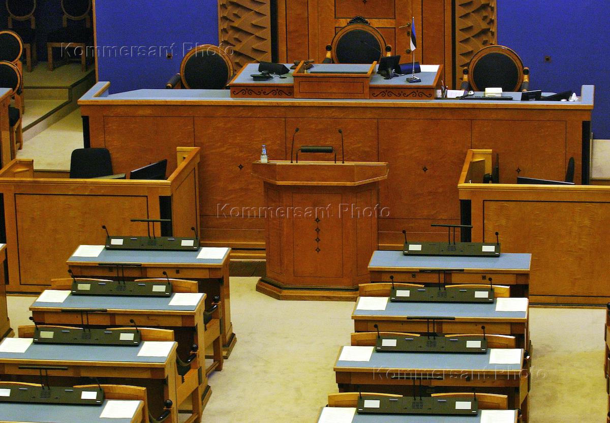 Зал заседаний Эстонского парламента. Грузовой порт в Силламяэ на берегу Финского залива.
