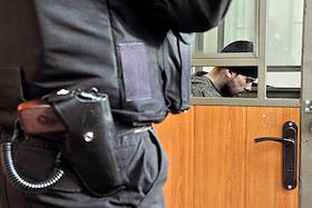 Подозреваемый в обстреле полицейских в Новошахтинске Павел Николин, в зале Ленинского районного суда.
