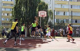 Турнир по баскетболу 3х3 от команды программы "Наш двор" во дворе жилого дома по адресу Фучика, 133.