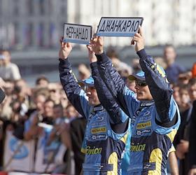 Заезд гонщиков "Mild Seven Renault F1 Team" в рамках визита в Москву на Москворецкой набережной.