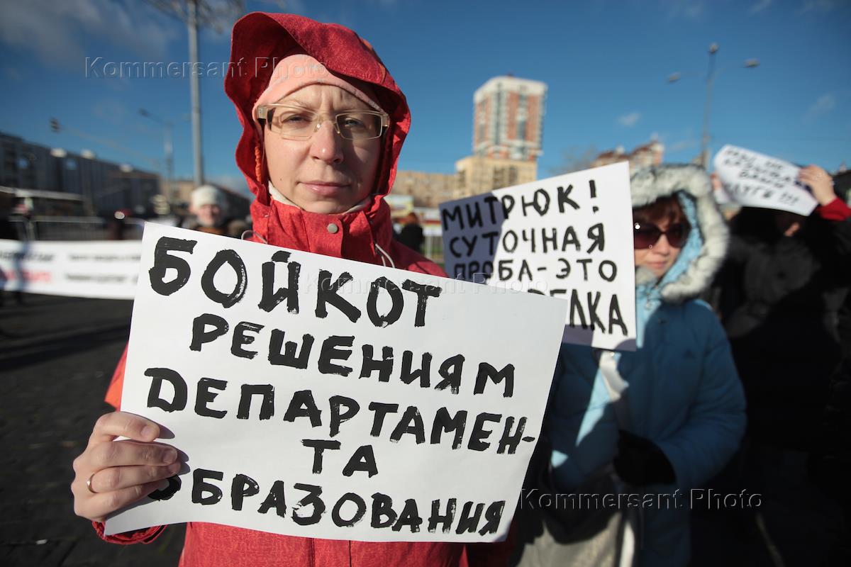 Митинг родителей московских дошкольников, возмущенных ситуацией с питанием в детских садах прошел у…