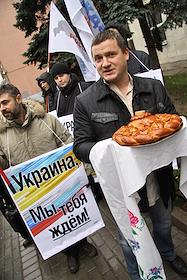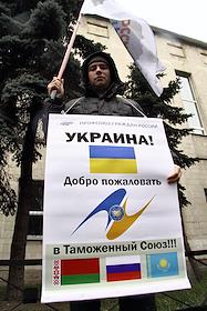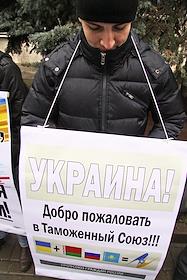 Пикет с лозунгами, призывающими Украину вступить в Таможенный и Евразийский союз, организованный…