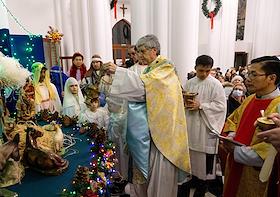 Праздничная месса в канун Рождества Христова в католической Церкви Пресвятой Богородицы.