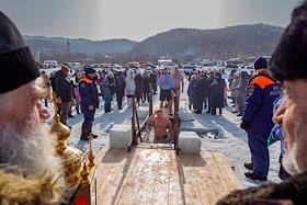 Празднование Крещения Господня в Свято-Серафимовском монастыре на острове Русский во Владивостоке.