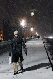 Снегопад в Лондоне, Великобритания. Биг Бен.