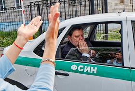 Мэр Томска Иван Кляйн в машине ФСИН после окончания заседания суда