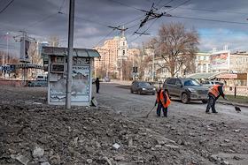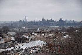 Виды Мариуполя. Восстановительные работы в Драмтеатре.