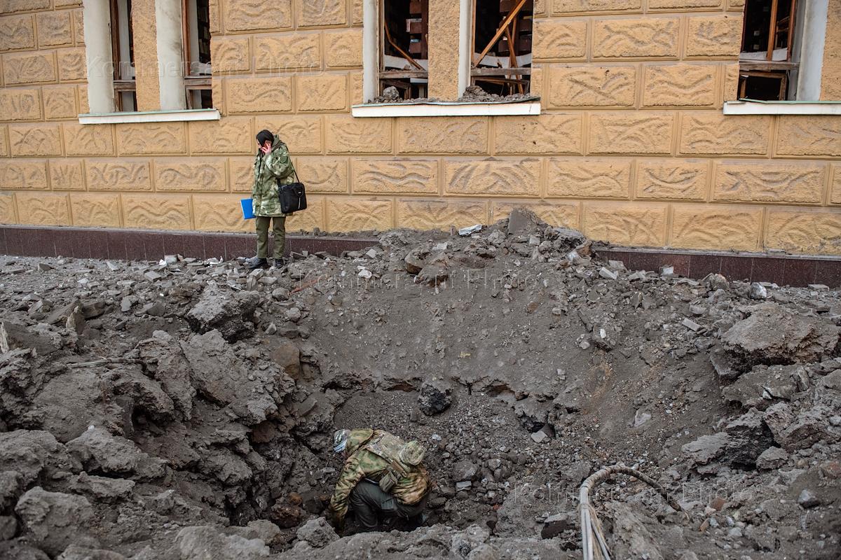 Последствия обстрела административного здания шахты Лидиевка в Донецке.