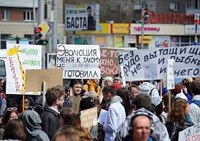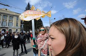 Первомайское молодежное шествие "Монстрация" на улицах Новосибирска.
