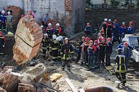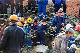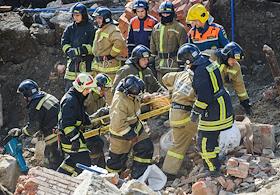 Спасательные работы на месте обрушения стены и перекрытия в хозяйственном корпусе административного…