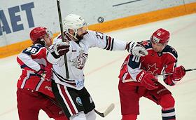 Континентальная хоккейная лига (КХЛ). Матч между командами ЦСКА (Россия, Москва) и "Динамо Рига"…