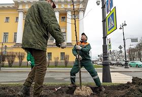 Посадка деревьев в Александровском саду в рамках дня благоустройства.
