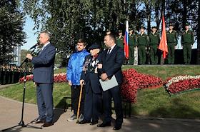 Возложение цветов памятнику ополченцам у Балтийского вокзала в день Ленинградского народного…