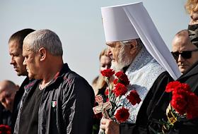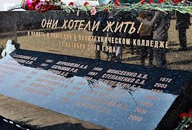 Открытие памятника жертвам событий 17 октября 2018 года в политехническом колледже в Керчи.