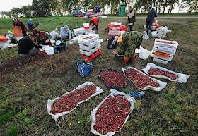 Рабочие сельскохозяйственного предприятия "Плесские журавины". Уборку клюквы сухим и мокрым…