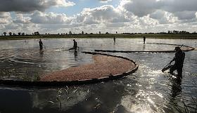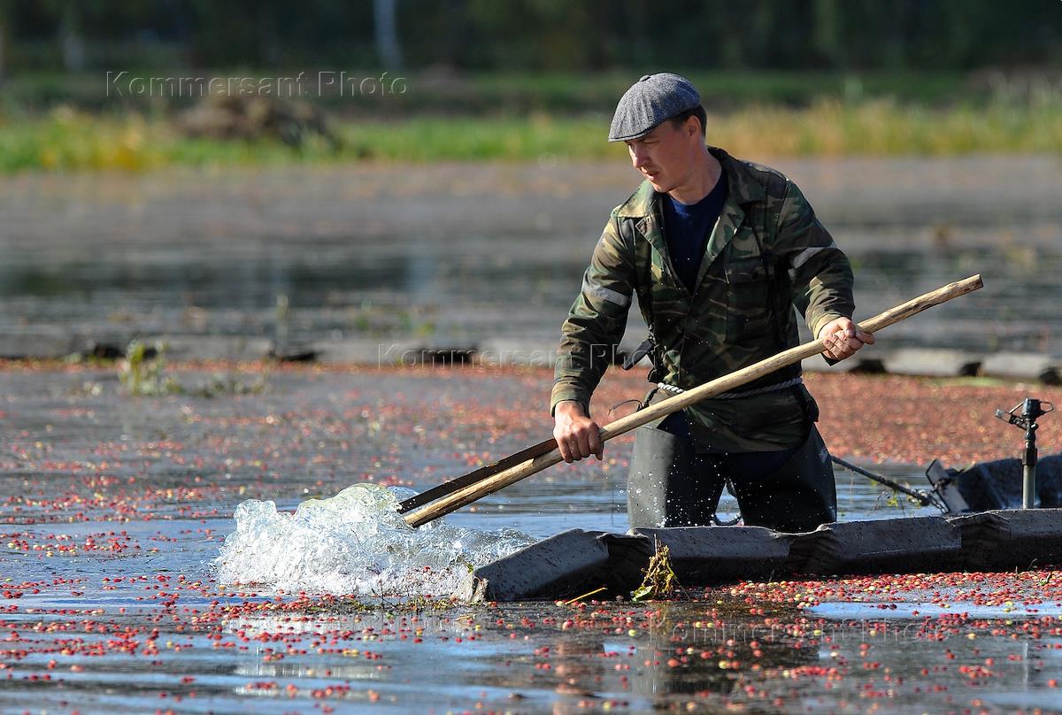 Рабочие сельскохозяйственного предприятия "Плесские журавины". Уборку клюквы сухим и мокрым…