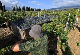 Сбор урожая винограда на плантациях АО ПАО "Массандра".