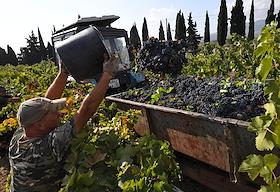 Сбор урожая винограда на плантациях АО ПАО "Массандра".