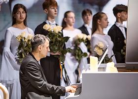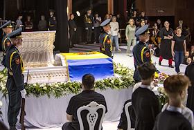 Церемония прощания с композитором Евгением Догой в Национальном Дворце имени Николая Сулака в…