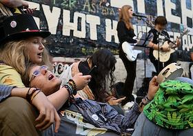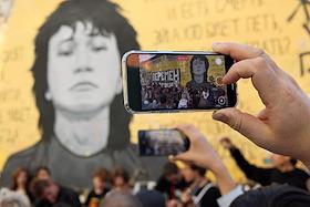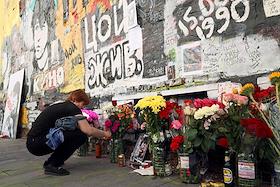 Встреча поклонников группы "Кино" у стены Виктора Цоя на Арбате. 30 лет назад в этот день Виктор Цой…