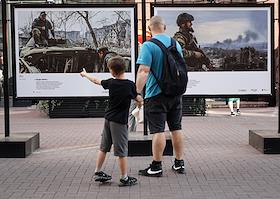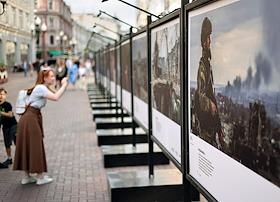 Выставка лауреатов всероссийского конкурса военной фотожурналистики на Арбате.