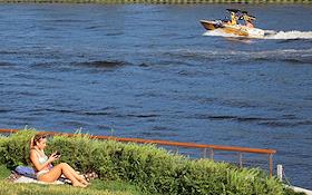 Жанровые фотографии. Виды Красногорска. Живописная набережная. Отдых горожан у реки.