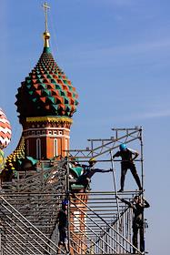 Монтаж конструкций для проведения фестиваля "Спасская башня" на Красной площади. Памятник Минину и…