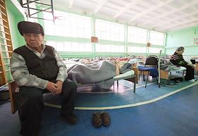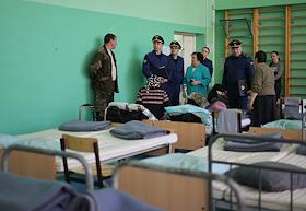 Работа пункта временного размещения, работающего на базе лицея №8, в Оренбурге во время паводка.
