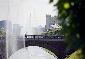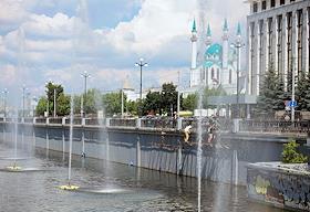 Запуск 56 новых фонтанов на канале Булак в Казани.