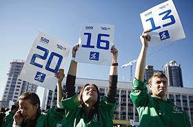 Флешмоб и эстафеты "Олимпийские старты" в ознаменование 500 дней до Игр в Сочи, на Театральной…