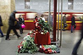 Возложение цветов в годовщину двойного теракта на станции метро "Лубянка" и "Парк Культуры".