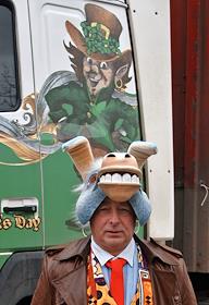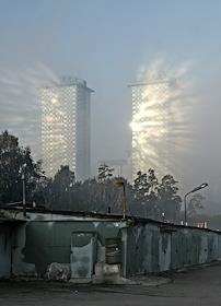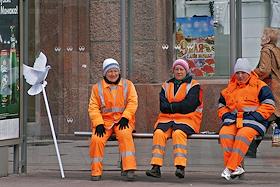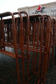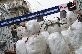 Растяжка "Российскому союзу промышленников и предпринимателей 15 лет" и снеговики у Театра оперетты