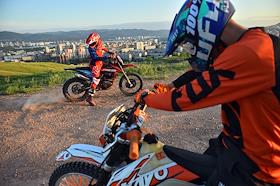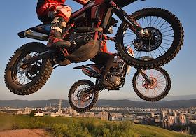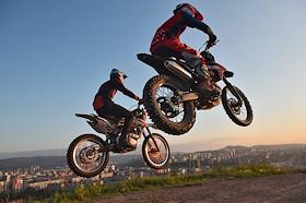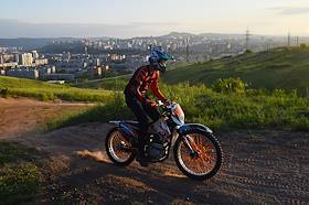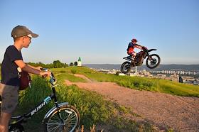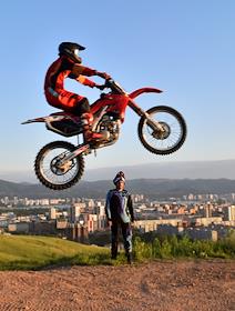 Жанровые фотографии. Тренировка по прыжкам на трамплинах эндуро мотоциклистов в Красноярске.