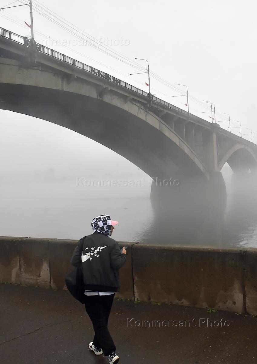 Жанровые фотографии. Виды Красноярска во время тумана на реке Енисей.