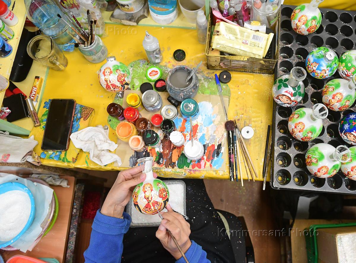 Жанровые фотографии. Работа фабрики новогодних игрушек «Бирюсинка» в Красноярске.