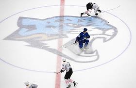 Континентальная Хоккейная Лига (КХЛ). Матч между командами "Барыс" (Астана) - "Авангард" (Омск) на…
