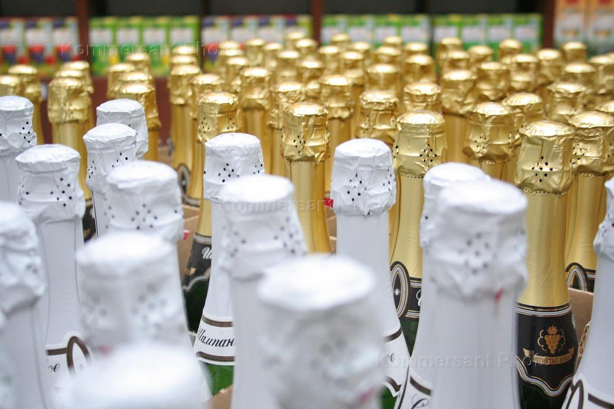 Бутылки шампанского. открытие гипермаркета Простор.